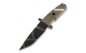 - Нож Extrema Ratio Col Moschin Compact Desert Warfare – нож с рукоятью песочного цвета и камуфляжными полосами на клинке